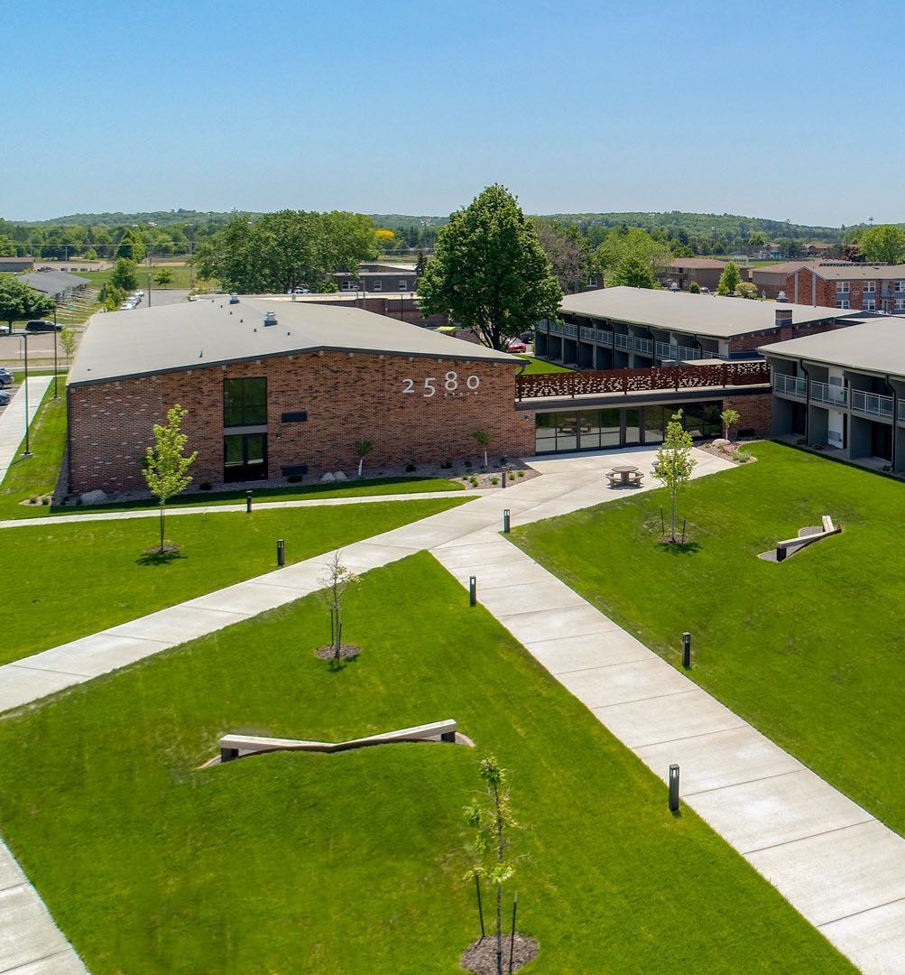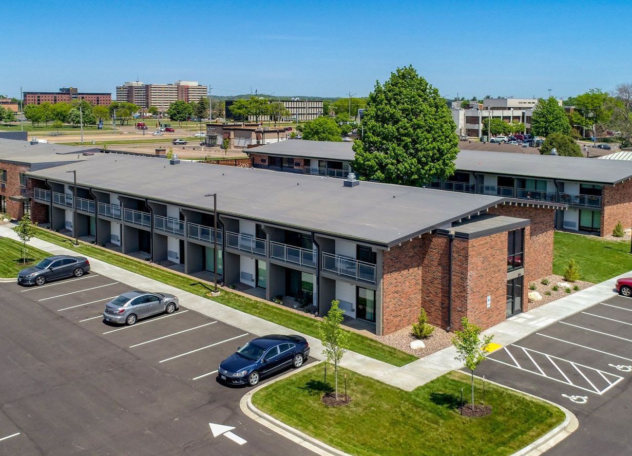 Community amenities include a spacious lounge, on-site laundry, a large grassy courtyard, and electric vehicle charging stations. Located at the corner of Stein and Clairemont, The Howard offers walkable access to coffee shops, restaurants, hospitals, UWEC, and CVTC—plus quick connections to all areas of Eau Claire.