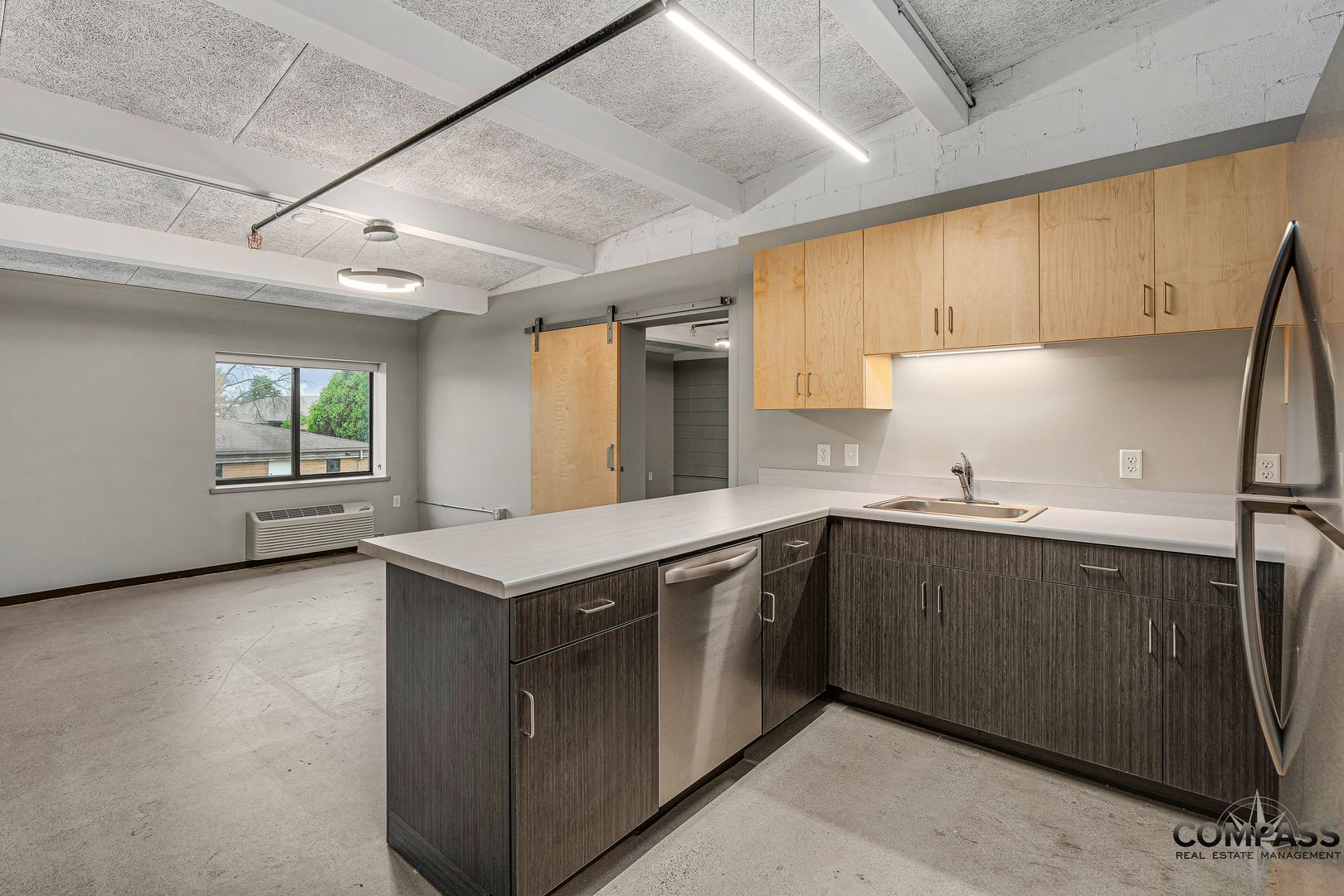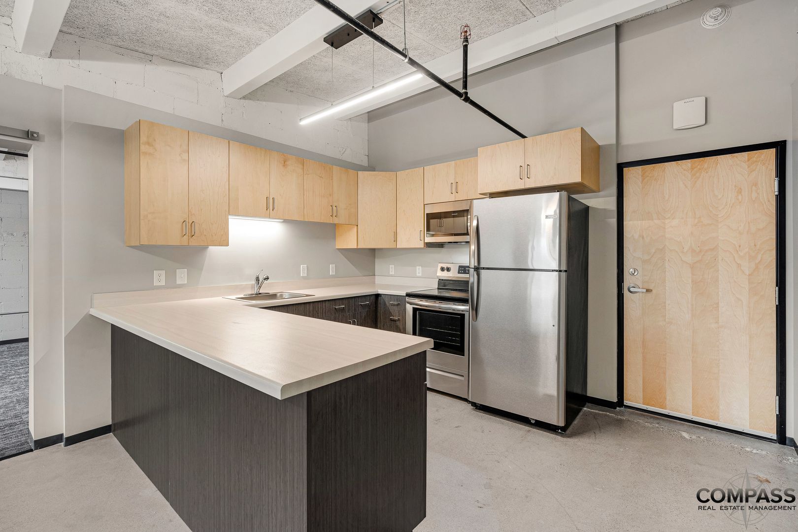Be among the first to live in this industrial modern two-bedroom apartment. Upon entering this open-concept two-bedroom, you are welcomed by polished concrete floors, exposed brick walls, stainless steel appliances, two-tone cabinets, and unique LED lighting. Make this space your own with the versatility of neutral tones and raw elements. This sustainable, concrete complex was built with longevity, safety, and acoustics in mind. Relax in the vibrant community lounge complete with a pool table, foosball table, kitchenette, and seating areas. At The Howard, residents are just a short walk from coffee shops, restaurants, hospitals, UWEC, and CVTC. Being on the corner of Stein and Clairemont, residents are in a centralized location to reach all corners of Eau Claire. Simplify paying your bills with ALL utilities included in your rent payment.