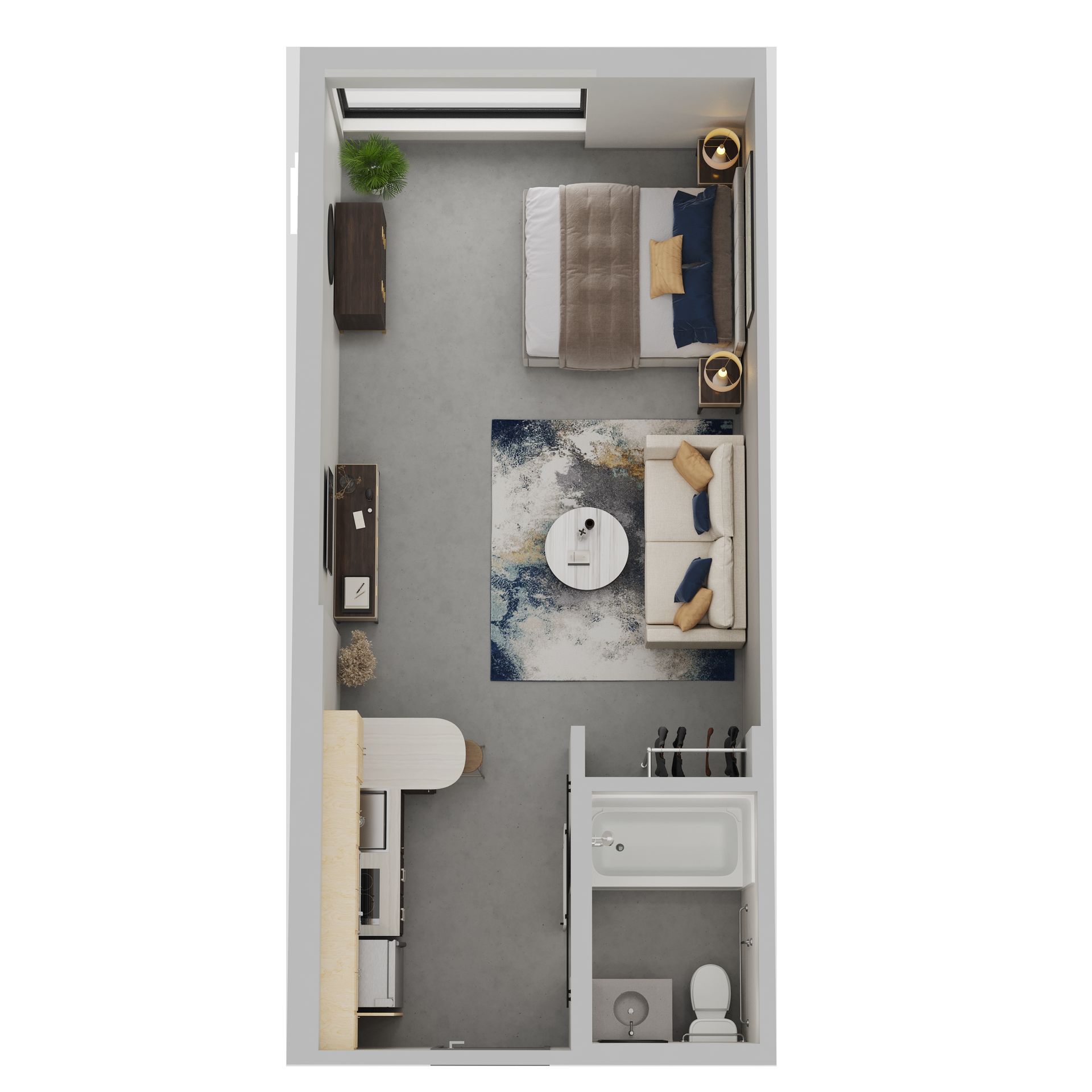 Be among the first to live in this industrial modern studio apartment. Upon entering this open-concept studio, you are welcomed by vaulted ceilings, polished concrete floors, exposed brick walls, stainless steel appliances, two-tone cabinets, unique LED lighting, and a full-size balcony. Make this space your own with the versatility of neutral tones and raw elements. This sustainable, concrete complex was built with longevity, safety, and acoustics in mind. Relax in the vibrant community lounge complete with a pool table, foosball table, kitchenette, and seating areas. At The Howard, residents are just a short walk from coffee shops, restaurants, hospitals, UWEC, and CVTC. Being on the corner of Stein and Clairemont, residents are in a centralized location to reach all corners of Eau Claire. Simplify paying your bills with ALL utilities included in your rent payment.